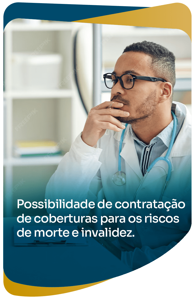- Possibilidade de contratação de coberturas para os riscos de morte e invalidez
